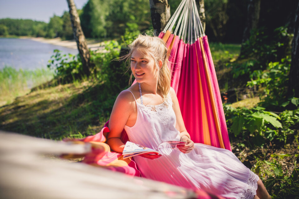 De originele Braziliaanse hangmat, met liefdevol bewerkte details. De Amazonas Santana Pink hangmat combineert Braziliaans vakmanschap met fel glanzende kleuren en zachte, zijdeachtige maar duurzame draden. Dit maakt zelfs een kleinschalige hangmat uiterst comfortabel! Heeft een diepe doorzakking in het midden. Voor optimaal ligcomfort ga je diagonaal in de hangmat liggen.